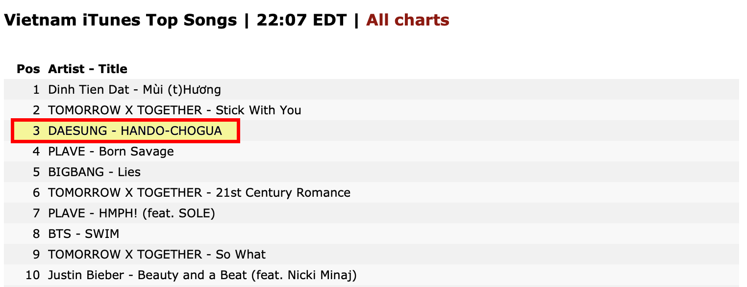 "HANDO-CHOGUA"…대성, 트로트 아이튠즈 차트인